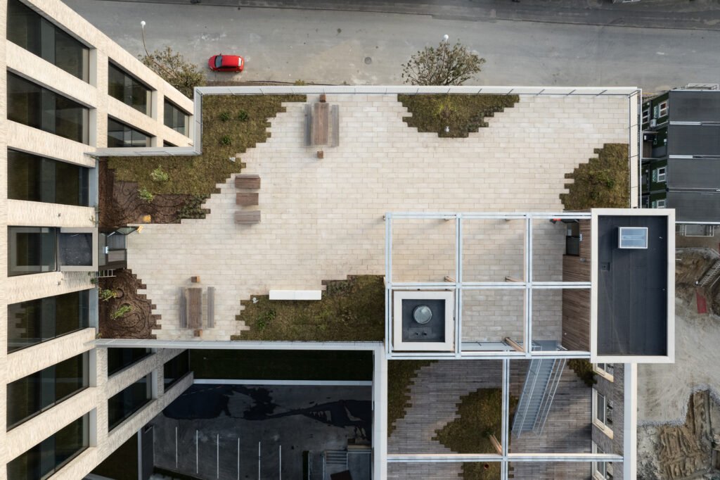 Besides the office spaces, also provides a restaurant, a café, informally shared workspaces, as well as meeting and event facilities that promote inspiration and community